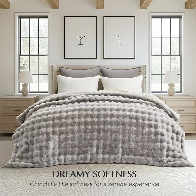 - Built to Last - Our Ridgeline Faux Fur bubble blanket is crafted with meticulous attention to detail, using premium faux fur and expert craftsmanship. Designed to withstand the test of time, it combines durability with unmatched softness. The high-quality construction ensures that this blanket remains in pristine condition, maintaining its beauty and plushness for years to come.