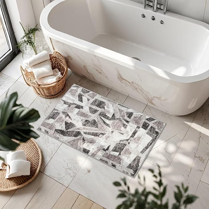 Modern Abstract Door Mat Indoor Entrance 2X3 Front Porch Area Rug Washable, Non-Slip Small Grey Rugs for Entryway Bathroom Ultra-Thin, Throw Carpet for Kitchen Bedroom Nursery Kids Print Faux Wool