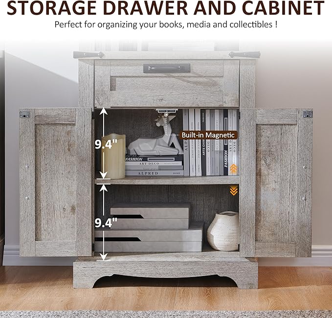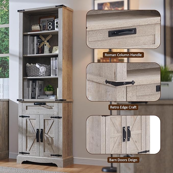 - Large Storage Space: This bookcase with drawer feature with 5 spacious adjustable shelves , 1 drawers and a colsed cabinet with barn door design, providing ample storage for all your books and decor items. Dimensions: 71.4"H x 23.6"W x 11.8"D. Whether in your living room, bedroom, or home office, this white bookshelf with a versatile storage cabinet is the perfect addition to your space