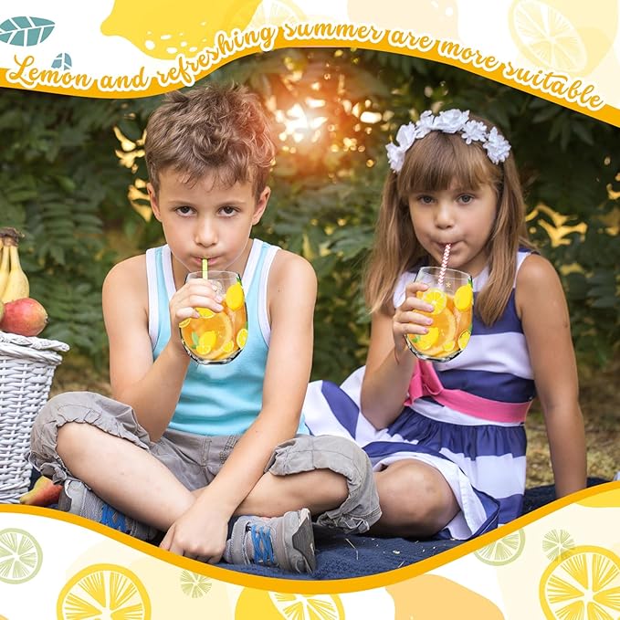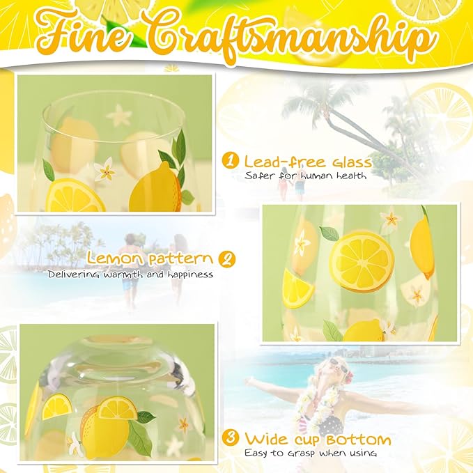 - Suitable Size: our lemon drinking glasses feature a fresh and bright lemon pattern design, each glass is approximately 4.72 inches tall, 2.87 inches wide at the mouth, and comfortably holds 17 ounces, nice for serving you and your loved ones refreshing drinks on hot summer days; Made of lead-free glass, safe, healthy and durable