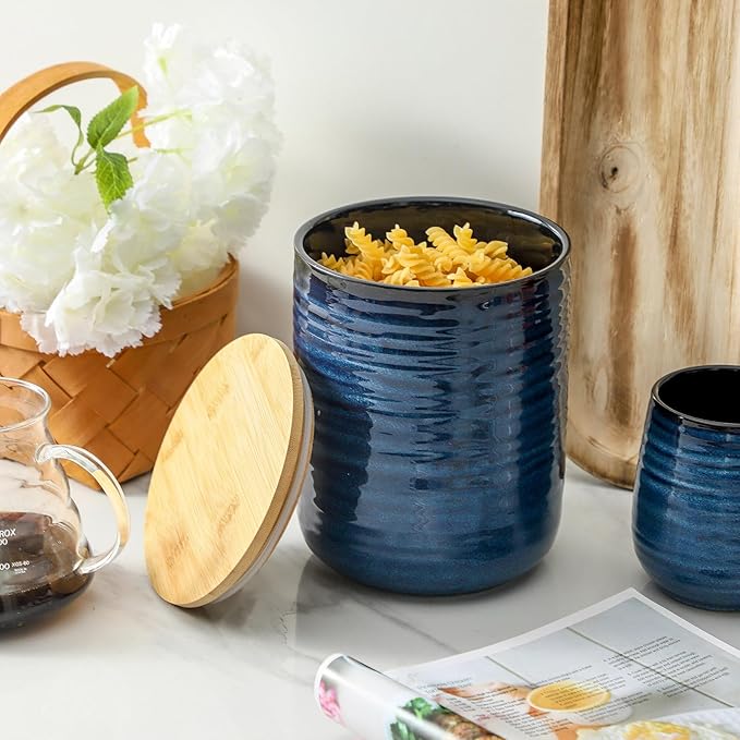 Hasense Ceramic Canister with Airtight Lid for Kitchen Counter, 80 Ounce Large Ceramic Food Storage Jar with Seal Ring for Serving Flour, Grain, Cereal, Pasta, Coffee, Sugar, Tea and Spice, Blue