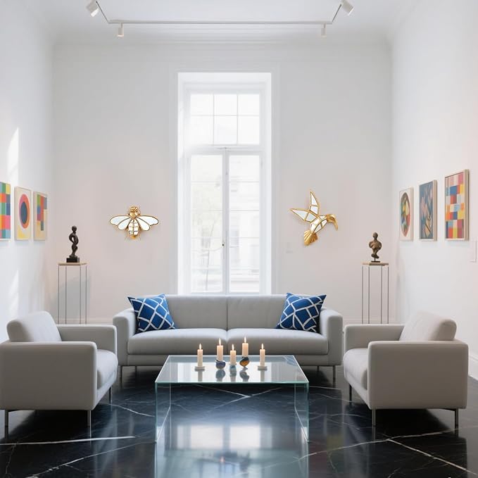 - Artistry in Form:These golden wall sculptures of hummingbirds, turtles, bees, butterflies, and beetles exhibit masterful anatomical precision. Each creature's dynamic posture - from the butterfly's mid-flight wing articulation to the beetle's exploratory leg positioning - captures nature's vitality through sculptural storytelling. The pieces transform spaces with organic elegance through meticulously rendered textures like wing venation and carapace patterning.