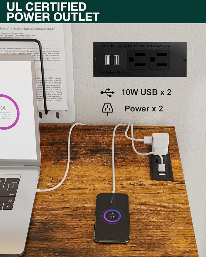 - πππ‘π§πππ₯ππ§ππ π£π’πͺππ₯ ππ¨π β ππππ₯ππ ππ©ππ₯π¬π§πππ‘π ππ§ π’π‘ππ β Stay powered and productive with 2 built-in AC outlets and 2 USB portsβperfect for laptops, phones, tablets, and more. No more messy extension cords or reaching for distant plugs; this smart design keeps all your devices charged and your workspace neat