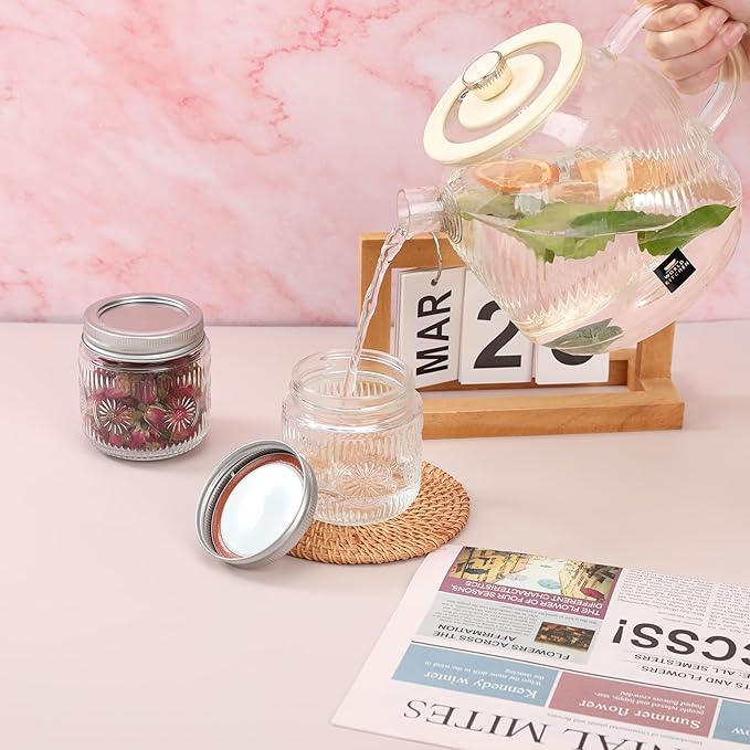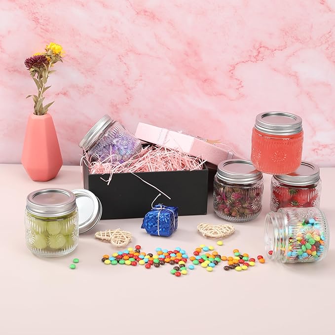 - APPROPRIATE CAPACITY: Each 8oz glass jars perfect for canning jams, jellies, honey, or storing spices and herbs. Also great for DIY crafts, wedding favors, and home décor.