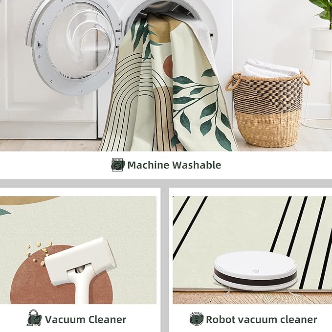 Indoor Outdoor Area Rug, Mid Century Sun Outdoor Patio Rug,Washable Abstract Art Leaves Eucalyptus Runway Rugs Non-Slip Carpet for Camping, Bedroom, Deck(8x10)