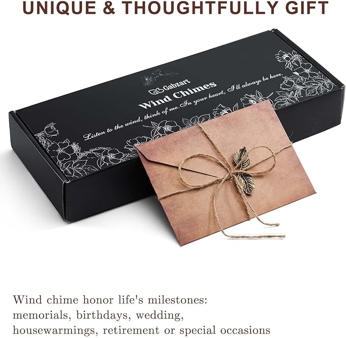 - Unique & Thoughtfully Gift: Beautifully gift boxed with a set vintage-inspired linen envelope, the wind chime honor life’s milestones: memorials, birthdays, wedding, housewarmings, or special occasions. A heartfelt gift for moms, dads, grandparents, family or friends seeking solace or celebration.