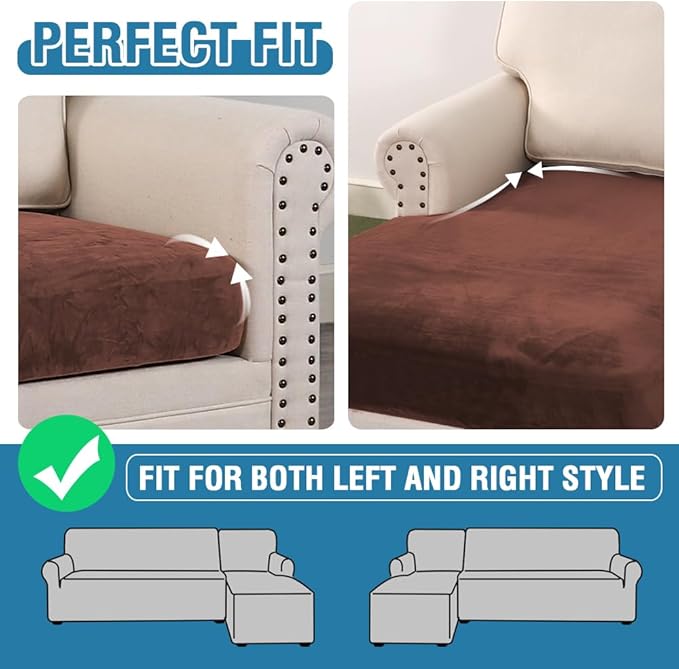 - INCREDIBLY COMFORTABLE VELVET: Products passed GLOBAL RECYCLED STANDARD certificate.This innovated stretch sofa slipcovers are constructed with 3 PIECES,including 1 Chaise cover and 2 individual cushion covers. Crafted from luxurious velvet plush fabric, feature thick, soft, smooth, anti-wrinkle, no fading, durable as well as highly stretch. Protect your cushion furniture from daily wears and tears, stains, kids, scratches from pet claws, dogs or accidental spills