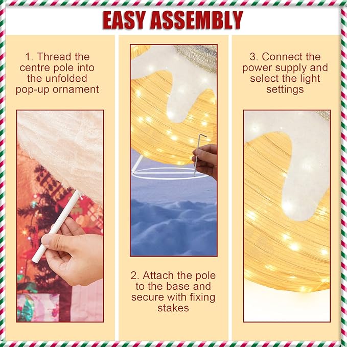 - Easy Setup: With collapsible frames, these ornaments are simple to assemble and disassemble, making them a convenient choice for your festive decor