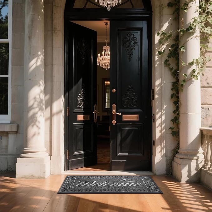 Yimobra Welcome Mat, Heavy Duty Sturdy Door Mats for Home Entrance Outdoor Indoor, Front Doormat for Outside Patio Floor Entry Porch Garage Office, Waterproof, Low Profile, 47 x 24, Black Grey