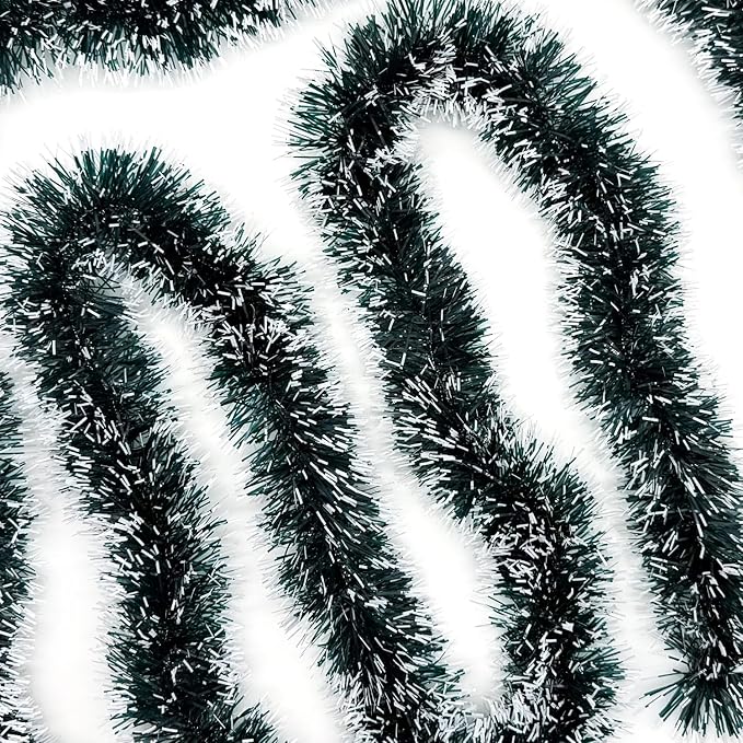 50 FT/15M Long Dark White Artificial Christmas Tinsel Garland Decorations DIY for Xmas Tree,Fireplace Mantel,Stairs Railing Outdoor Indoor Holiday Decor