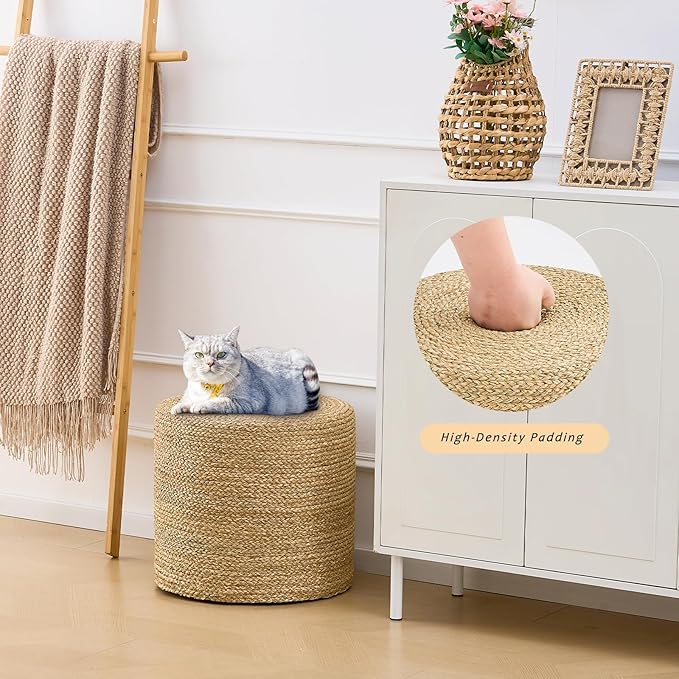 - 【Natural Water Hyacinth】Crafted from natural water hyacinth, LGENHOOM pouf brings a warm, organic look and feel to any space.