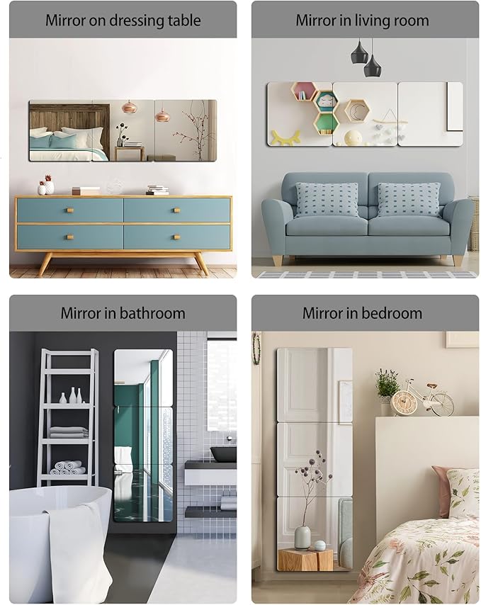 - (High definition): Composed of 4 packages - each 13.5inch x13.5inch image is very clear and distortion free, freely combined to decorate one's own room, can also be used as a full body mirror