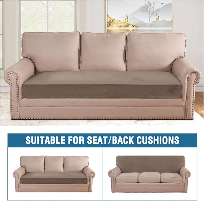 H.VERSAILTEX Velvet Stretch Individual Couch Cushion Cover Plush Cushion Slipcover for Loveseat Sofa Cushion Furniture Protector Seat Cushion Sofa Cover (1 Piece Sofa Cushion Cover, Mocha)
