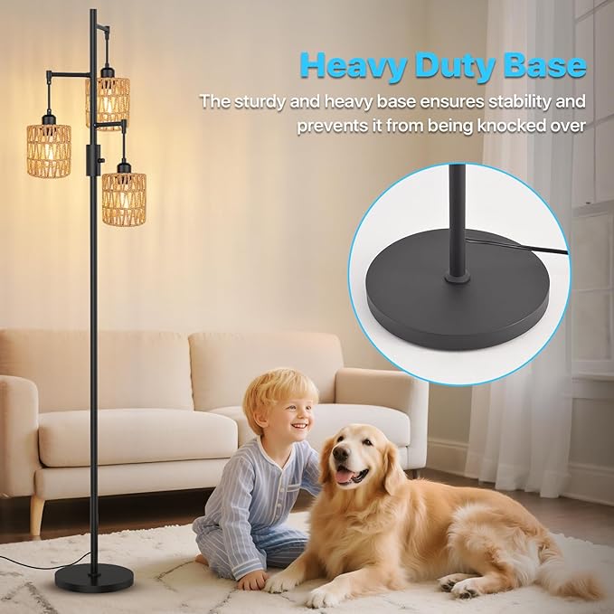 - 【Child & Pet Proof】 Engineered with an extra-wide weighted base to resist bumps and knocks. No more worries about toddlers playing or dogs tail-wagging near your boho wicker lamp