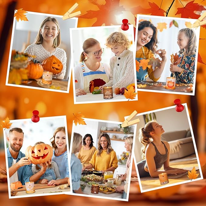 - Fall candles that capture the essence of autumn: These premium fall scented candles blend seasonal favorites like pumpkin spice candle, maple sugar, apple pie, hot cocoa, vinilla and clove cinnamon into one luxurious set. Made with soy candles non toxic wax and real essential oils, they're the perfect alternative to bath and body works candles. Whether you're decorating for fall decor or looking for decorative candles, this candle gift set brings warmth to any space.