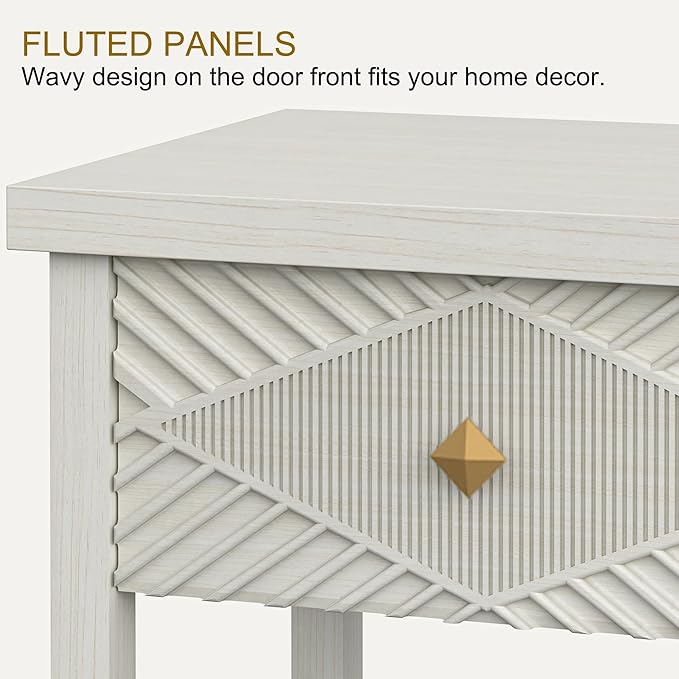 - Diamond Fluted Console Table: Light brown entryway table featuring a woodgrain tabletop with a sophisticated fluted drawer brings depth and texture to space. The refined diamond texture enhances its natural charm, making it an ideal surface for displaying lamps, vases, and picture frames while adding warmth and elegance to home