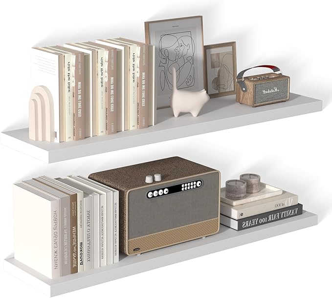 - 【Hassle-Free Setup in Minutes】- No drilling expertise needed! These wall shelves for storage feature pre-drilled holes and step-by-step instructions. Just secure the hidden brackets and slide in the shelf—effortless installation for instant organization.
