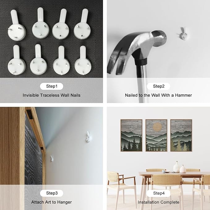 - 【Mountain Wall Art】Elevate the atmosphere of your home with the HLNIUC green mountain decorative paintings.This landscape painting is divided into three panels, creating a seamless panoramic view of mountains, forests and sun that brings the beauty of nature into your home. This will fill your home with a peaceful and natural atmosphere.Each print is expertly framed and ready to hang, making it a focal point in any room.