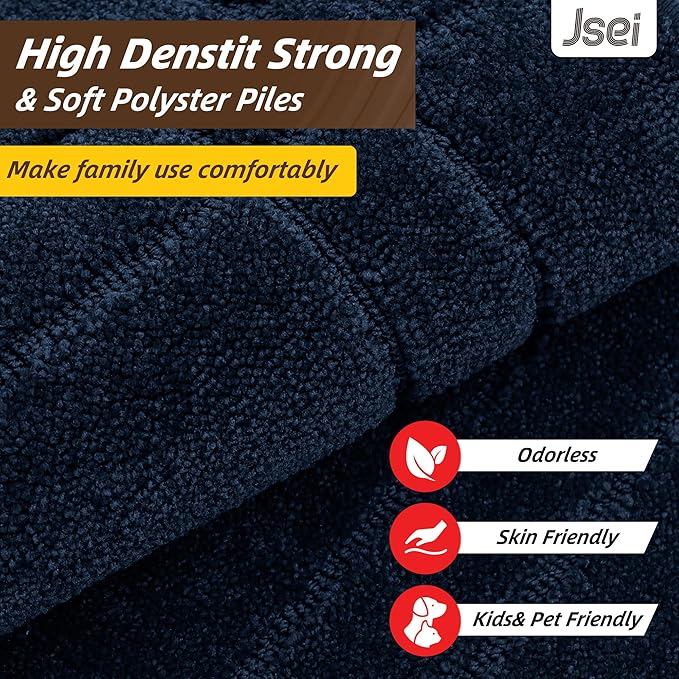JSEI Entryway Rugs Doormat 24"x36", Non-Slip Dirt Trapper Door Mats Indoor, Washable Absorbent and Stain Resist Welcome Floor Mat for Front Door, Dog Door Mat, Muddy Wet Shoes & Paws, Navy Blue