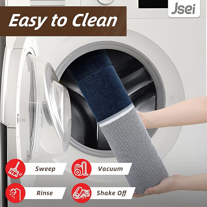 - Easy to Clean: The stain- and fade-resistant polyester surface vacuums easily. For deeper cleaning, machine wash cold with mild detergent, then tumble dry on low. Avoid bleach and fabric softener—our floor mat stays vibrant wash after wash