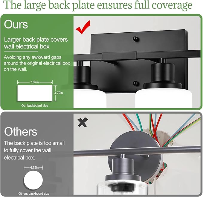 - [Soft, Eye-Friendly Lighting with Frosted Glass] The milky white glass shades gently diffuse light to reduce harsh glare—perfect for daily routines or relaxing evenings. The open-bottom design allows for quick bulb changes and better airflow.
