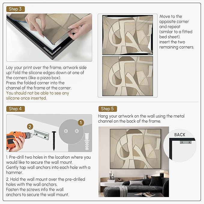 - Assembly Required: The artwork comes with the frame components unassembled. Don’t worry — setup is straightforward and tool-friendly. For best results and accurate alignment, we recommend two people to ensure a smooth assembly and a stable, secure wall mount.
