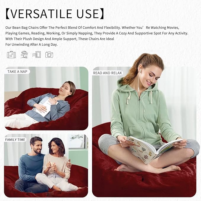 - 【Versatile Use】Our Bean Bag Chairs Offer The Perfect Blend Of Comfort And Flexibility. Whether You’Re Watching Movies, Playing Games, Reading, Working, Or Simply Napping, They Provide A Cozy And Supportive Spot For Any Activity. With Their Plush Design And Ample Support, These Chairs Are Ideal For Unwinding After A Long Day.