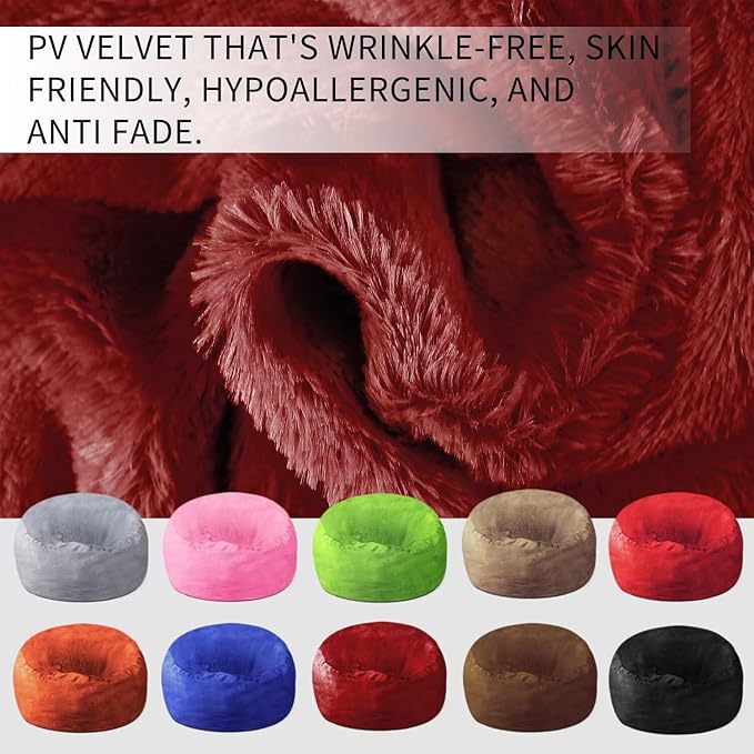 - 【Comfy,Durable,And Easy To Care】Our Giant Bean Bag Cover Is Made Of Super Soft, Furry Pv Velvet That'S Wrinkle-Free, Skin Friendly, Hypoallergenic, And Anti Fade. It Features Double-Stitched Seams And A Two Layer Zipper For Enhanced Durability And Long-Lasting Use.