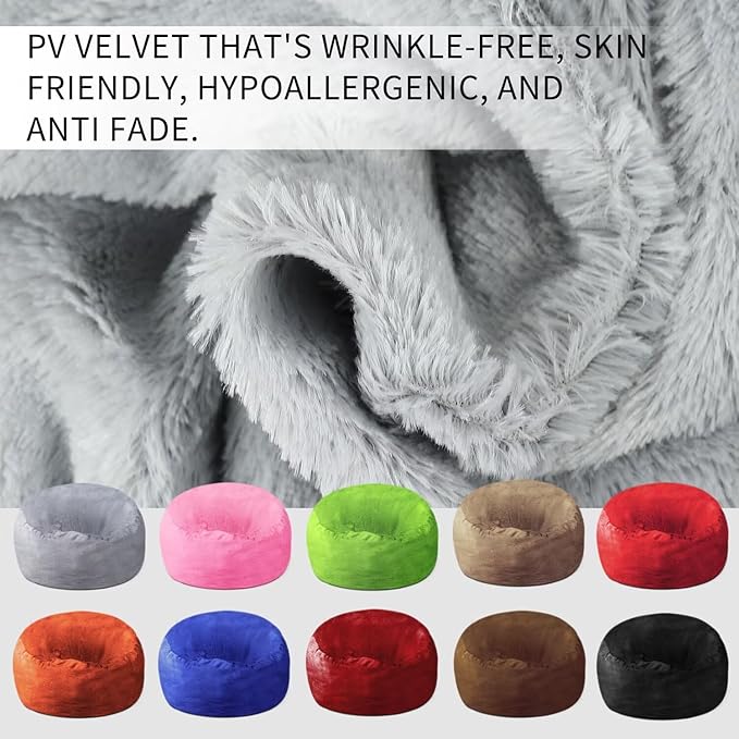 - 【Comfy,Durable,And Easy To Care】Our Giant Bean Bag Cover Is Made Of Super Soft, Furry Pv Velvet That'S Wrinkle-Free, Skin Friendly, Hypoallergenic, And Anti Fade. It Features Double-Stitched Seams And A Two Layer Zipper For Enhanced Durability And Long-Lasting Use.