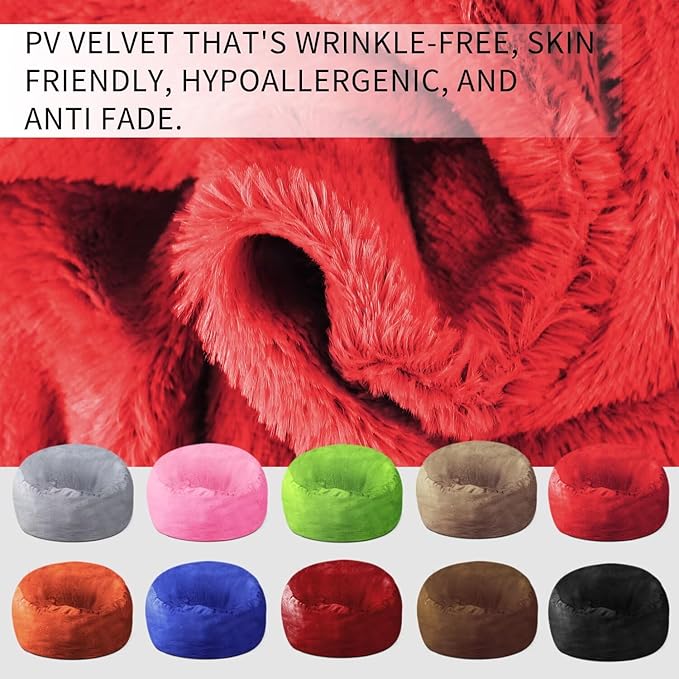 - 【Comfy,Durable,And Easy To Care】Our Giant Bean Bag Cover Is Made Of Super Soft, Furry Pv Velvet That'S Wrinkle-Free, Skin Friendly, Hypoallergenic, And Anti Fade. It Features Double-Stitched Seams And A Two Layer Zipper For Enhanced Durability And Long-Lasting Use.