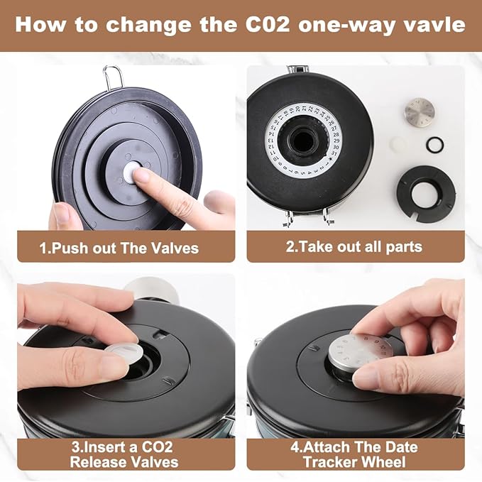 - STRONG SEALING:This coffee storage airtight canister adopts a one-way CO2 valve, which can release carbon dioxide from the airtight coffee containers, effectively isolating oxygen and water vapor from entering the coffee jars, preventing the food inside the coffee jar from getting wet, and thus maintaining the freshness of the coffee beans
