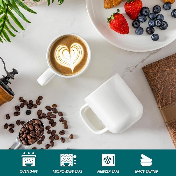 - 【Warm Ivory Glaze for Cozy Elegance】: Unlike bright white mugs, our warm ivory hue adds cozy elegance to your coffee ritual. The natural ivory color comes from iron-rich clay, with no artificial whitening chemicals—making these white coffee mugs both stylish and safe.