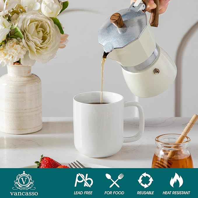 vancasso Porcelain Coffee Mugs Set, 12 oz Ceramic Coffee Cups for Latte Hot Tea Cappuccino Cocoa Milk Cups Set of 6, Dishwasher & Microwave Safe, White