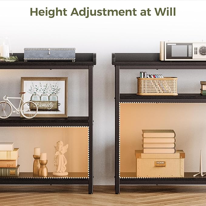 IRONCK Console Table, Sofa Table with Power Outlet, Farmhouse Hallway Table for Entryway, Living Room, Height Adjustable, Easy Assembly, Vintage Black,55"