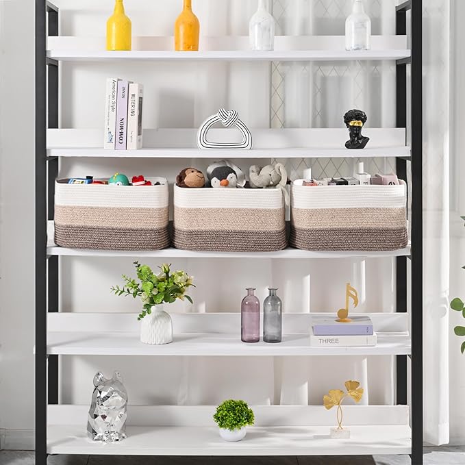 Large Storage Baskets for Organizing Shelves, Woven Cotton Rope Bins for Baby Nursery Organization, Book Toy Towel Organizer, 17"x13"x9.5", 3 Packs, Gradient Brown