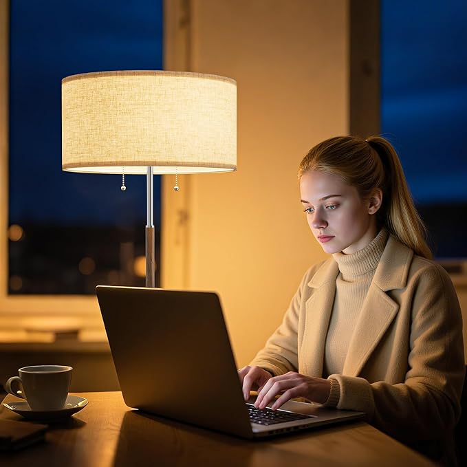 - ELEGANT E26 LAMP SOCKET DESIGN - This living room lamp has a built-in gold dual E26 Socket design with a drawstring zipper to turn the lamp on/off and change the lamp's color. Each drawstring zipper can control one bulb individually so that you can get bright light from one light. It also contains a foot switch (Note the foot switch is only used to turn the floor lamp on or off)