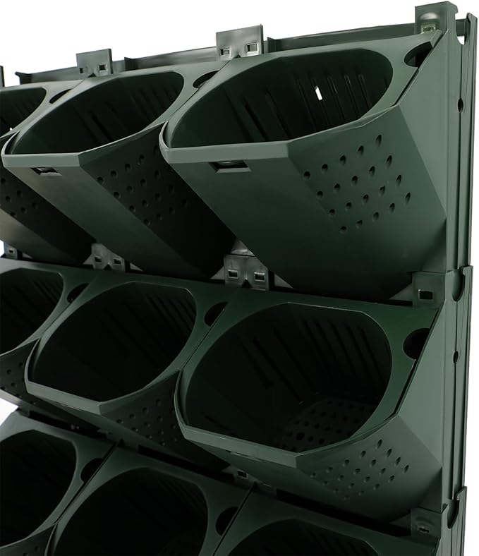 12Pieces 3-Pot Wall Planter Vertical Garden Plant Walls Wall Mounted Vertical Planter with Water-Storage Layer Stackable Wall-Mounted Flower Pot for Gardens, Balconies 180.78lbs Total Capacity (Green)