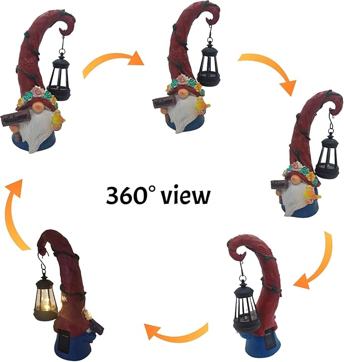- 【Weather proof Resin】This gnome decoration is made of durable resin material that is waterproof and fade-resistant, IP44 Waterproof Material.