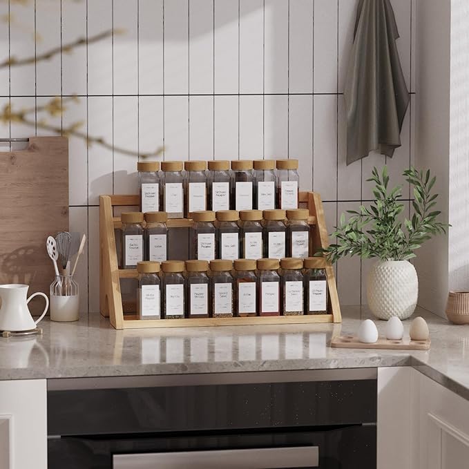 - 【Making Organization a Pleasure】Leaves you with a neat countertop! This tiered spice rack helps you quickly find spices and seasonings while cooking. In addition to using it on the countertop, it can be placed in a cabinet or pantry to organize spice jars, cans, and other items.