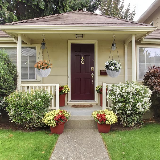 - Hanging Basket Planters: Each set includes two 29” tall hanging pots with chains and hooks-Artificial Rattan and special lighting design, the hanging sphere planters features a contemporary craft look for stylishly elevating any outdoor space