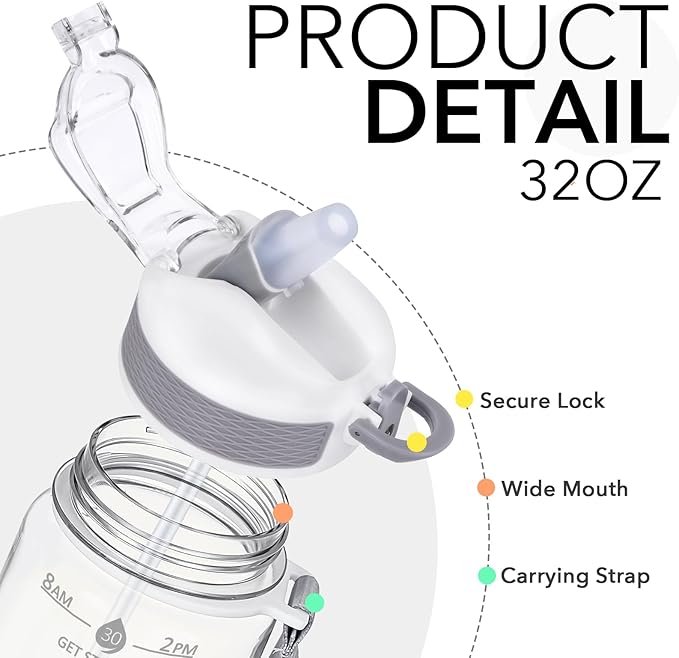 - Motivational Quote and Time Marker: 32 oz motivational water bottle with times to drink and inspirational quotes, it's great for tracking your water intake and stay on top of your hydration goals.