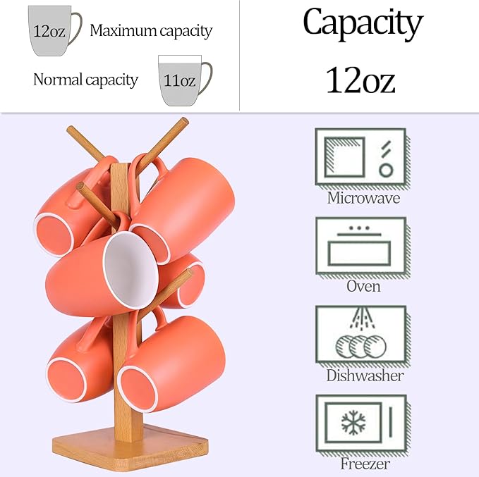 - Matte Porcelain Coffee Mugs: Are you still looking for practical and comfortable coffee cups? The 12oz coffee mugs have plenty of space, perfect for serving a full cup of coffee or hot chocolate to start your enjoyable day! This coffee mugs set of 6 ceramic mugs is perfect for home and office use, allowing you to enjoy leisure time with friends in different scenarios!