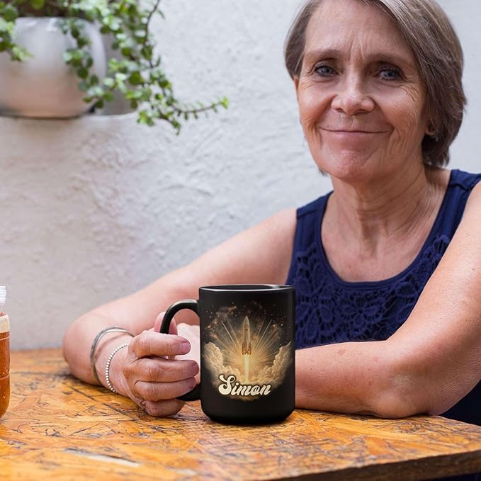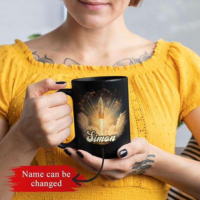 - Uniquely Personalized: Fuel your imagination with this Sci-Fi Inspired Ceramic Mug featuring a vibrant rocket design, ideal for astronaut fans and space dreamers. Add a custom name to create a personalized black coffee cup that’s both bold and unique. A unique mug gift for men who love sci-fi. Click "Customize Now" to make this cosmic mug your own!