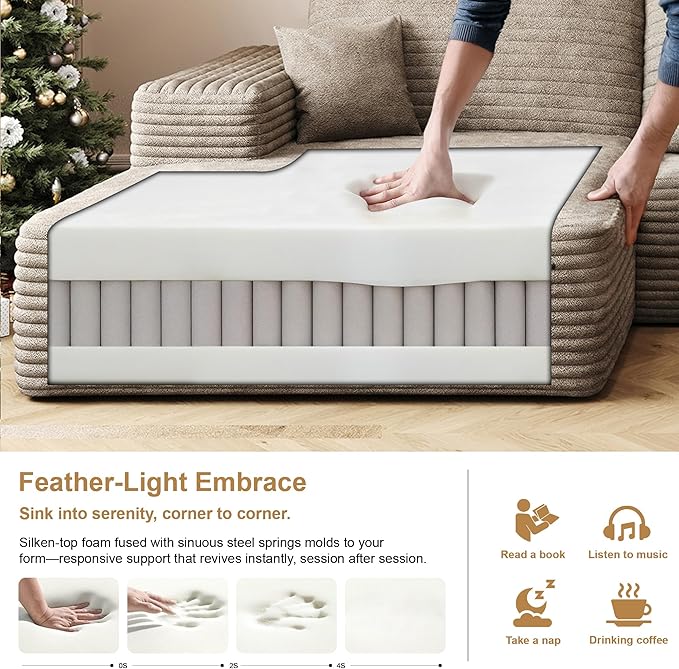 108" Sectional Couches for Living Room Modern Modular Sofa with L-Shape Couchs Upholstered Boneless Couch Deep Seat Sectional Couch with Chaise (Camel, Left Facing Chaise+2Seaters+1Ottoman)