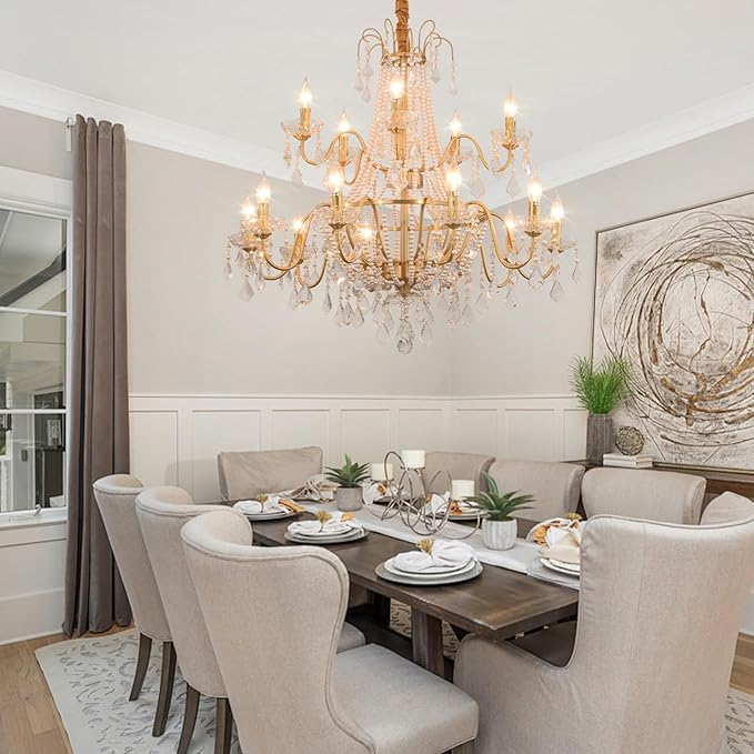 - 【15 E12 Light Sockets】Double-tier layout is equipped with 15 E12 standard lamps (bulbs included), supporting multiple combinations of warm/white light sources, easy to light up your living room or dining room.