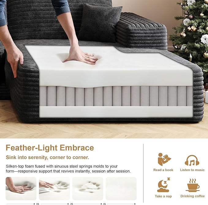 108" Sectional Couches for Living Room Modern Modular Sofa with L-Shape Couchs Upholstered Boneless Couch Deep Seat Sectional Couch with Chaise (Black, Right Facing Chaise+2Seaters)