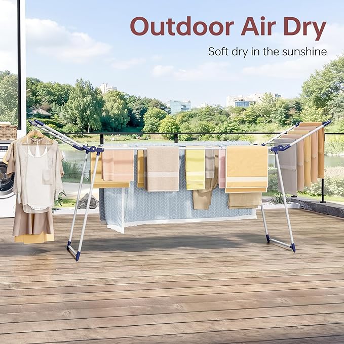- Premium Built - The foldable dryer rack is made of heavy duty metal and hard plastic to ensure the stability and durability of the drying rack. The coating layer gives the clothes drying rack a rust-free and elegant looks for indoor and outdoor use