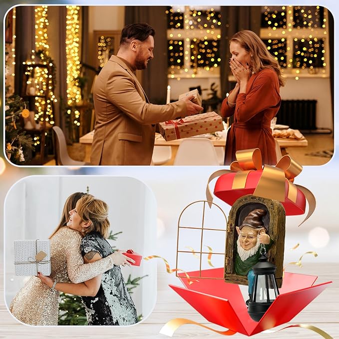 - 【Use on Multiple Occasions】: The solar powered gnome garden statue is perfect as a housewarming gift, anniversary gift, birthday gift christmas gift, mother's day gift or even an engagement gift for family and friends. Also a perfect decoration for balconies, courtyards, gardens.