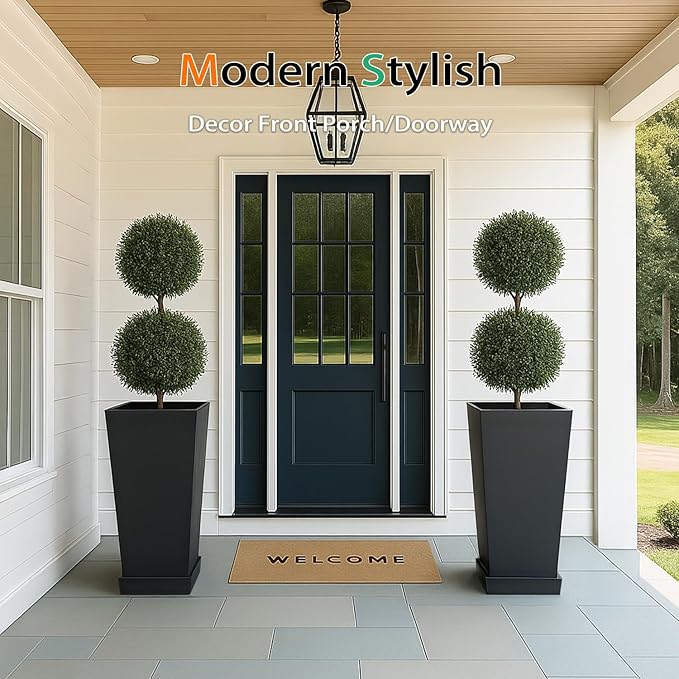 Tall Planters for Outdoor Plants, Large Resin Flower Pots with Saucers for Garden, Front Porch, Patio, Indoor - Set of 2 (Black, 30 inch - 2 Pack)