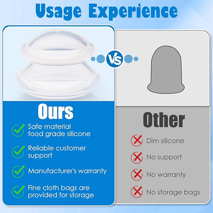 - Classic Cupping Therapy No Side Effect: 5 minutes of cupping therapy is equivalent to half an hour of deep massage. Good for improving blood circulation and detoxify the body.
